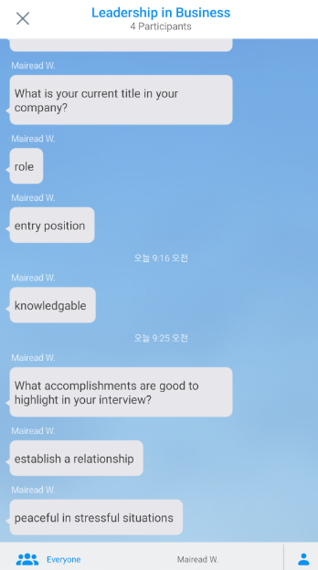 온라인 수업은 면접과 관련된 내용이었다. 오전 시간이라 그런지 학생들이 나까지 3명 밖에 없어 좋았다. 매번 거의 7명정도 꽉차게 있어서 한 두마디 하고 끝이었는데